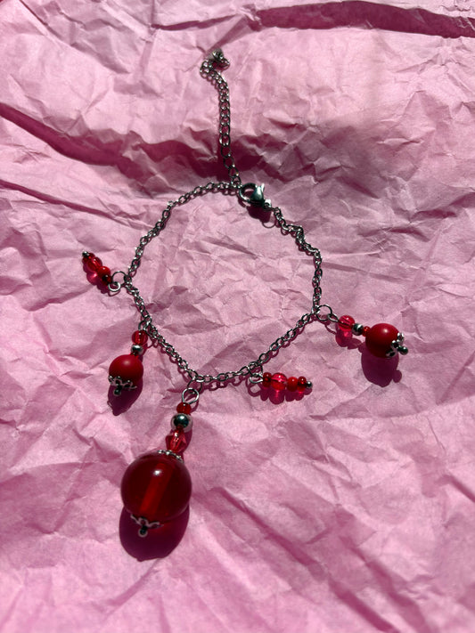 Red Rose Upcycled Charm Bracelet
