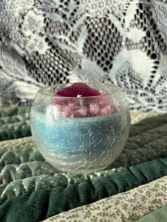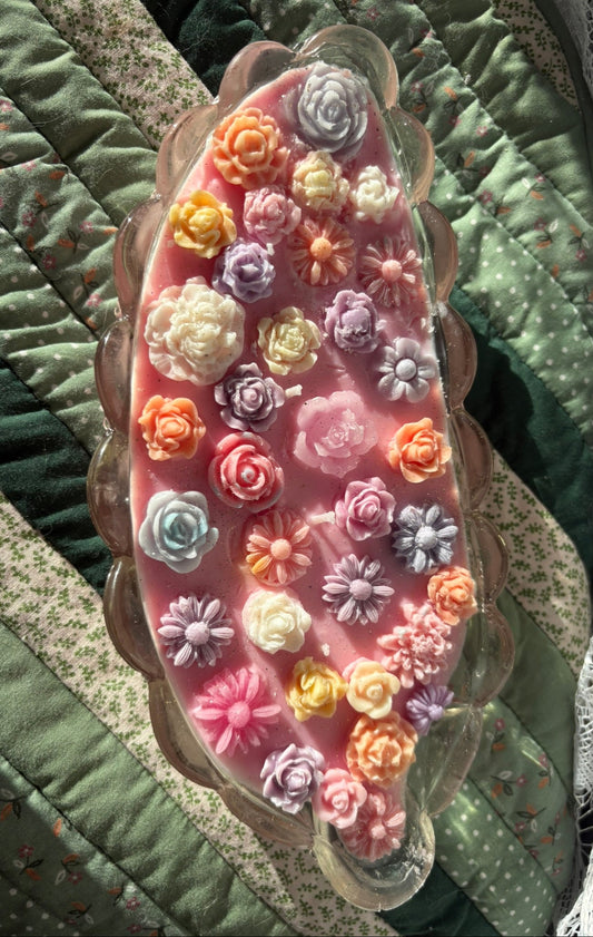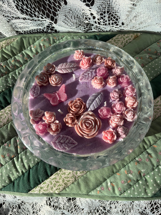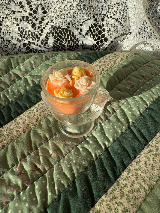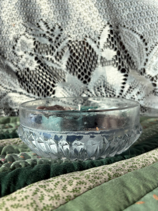 Handmade candles, created using unique and beautiful glass holders. All candle vessels are donated, thrifted, or preloved - upcycled into a new candle for you to enjoy.
