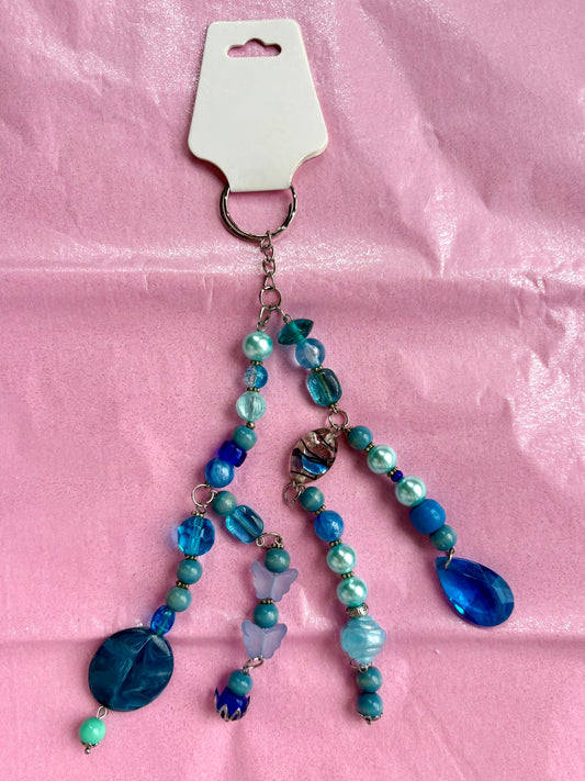 Large Upcycled Beaded Keychain | Blue