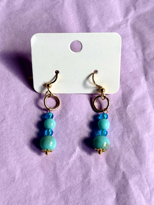 Gold Upcycled Beaded Earrings | Blue