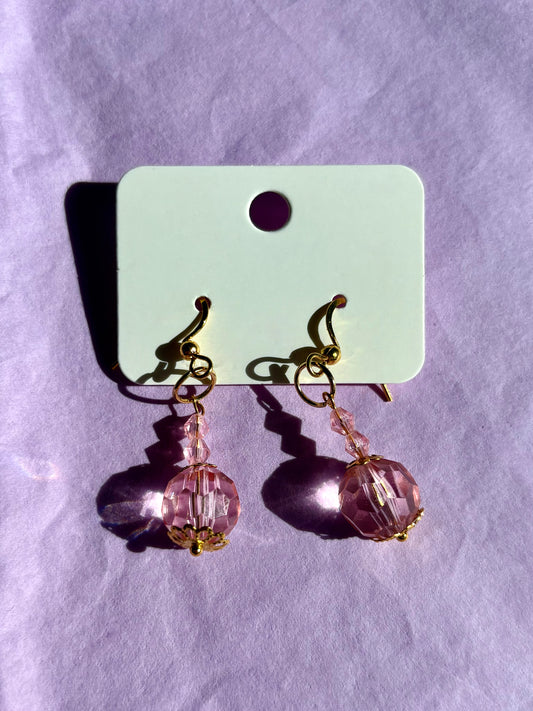 Gold Upcycled Beaded Earrings | Pink