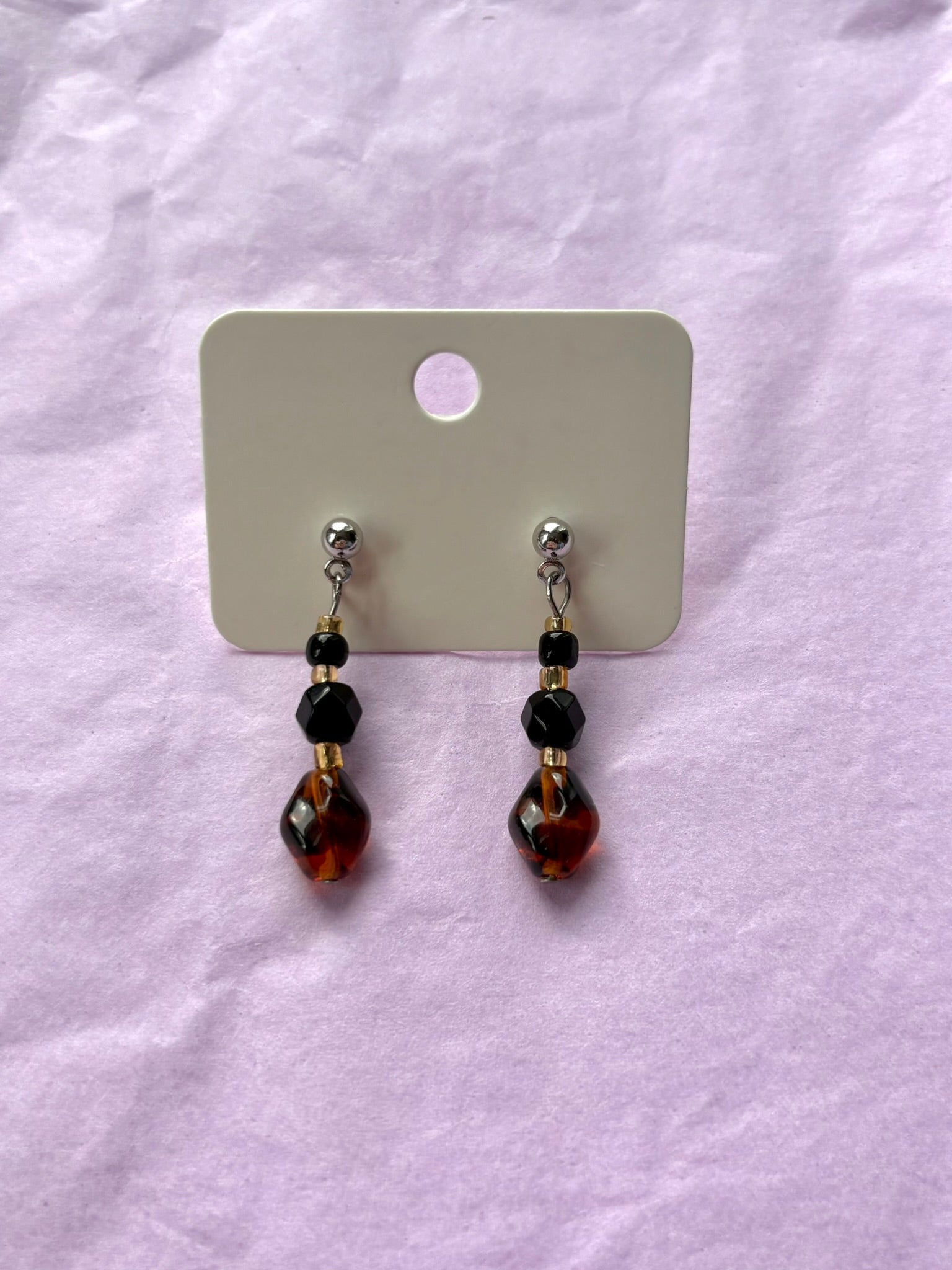 All earrings are made with stainless steel studs and butterfly backings. Jump rings, bead spacers, and other jewellery findings are stainless steel.