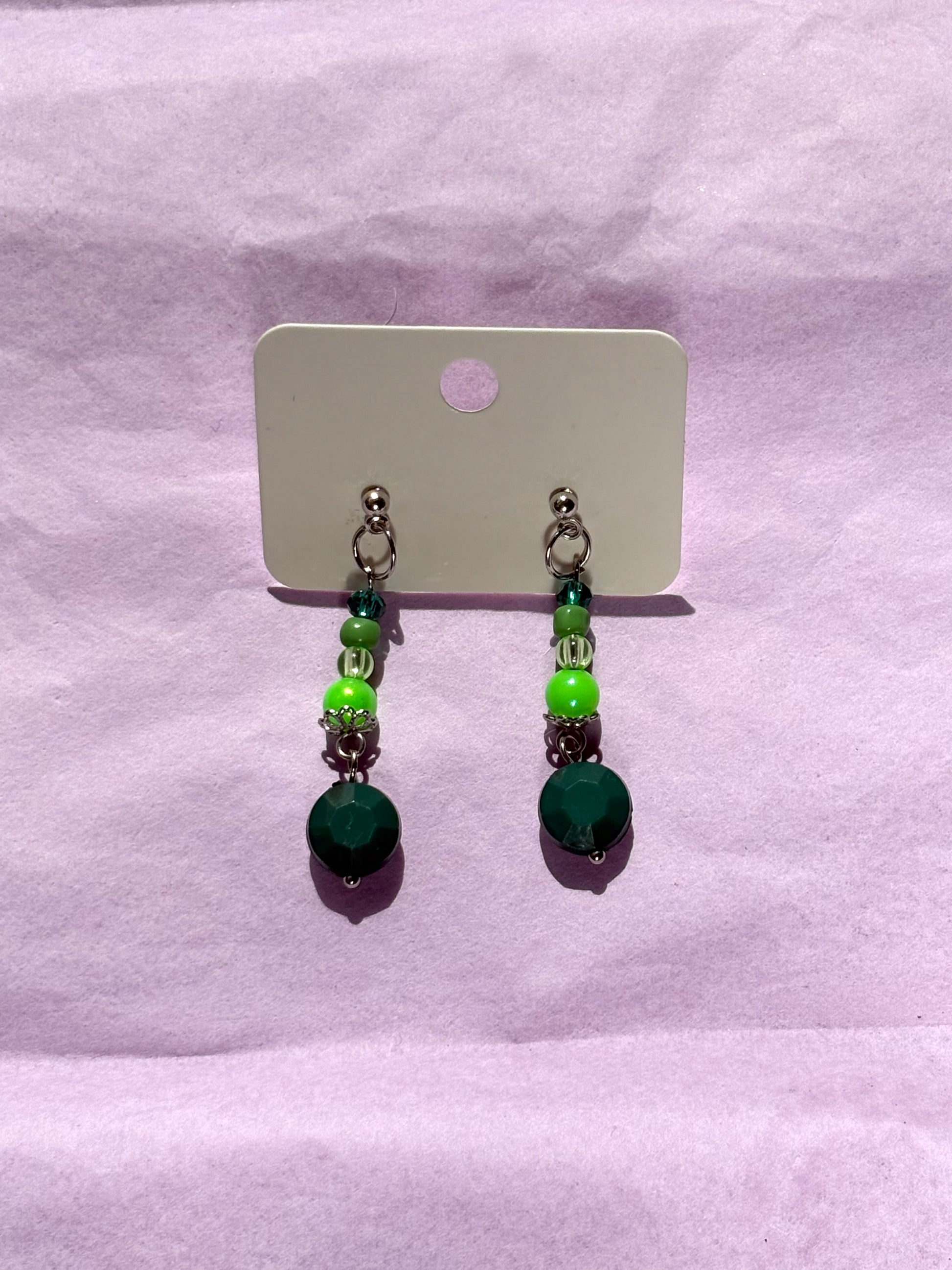 All earrings are made with stainless steel studs and butterfly backings. Jump rings, bead spacers, and other jewellery findings are stainless steel.