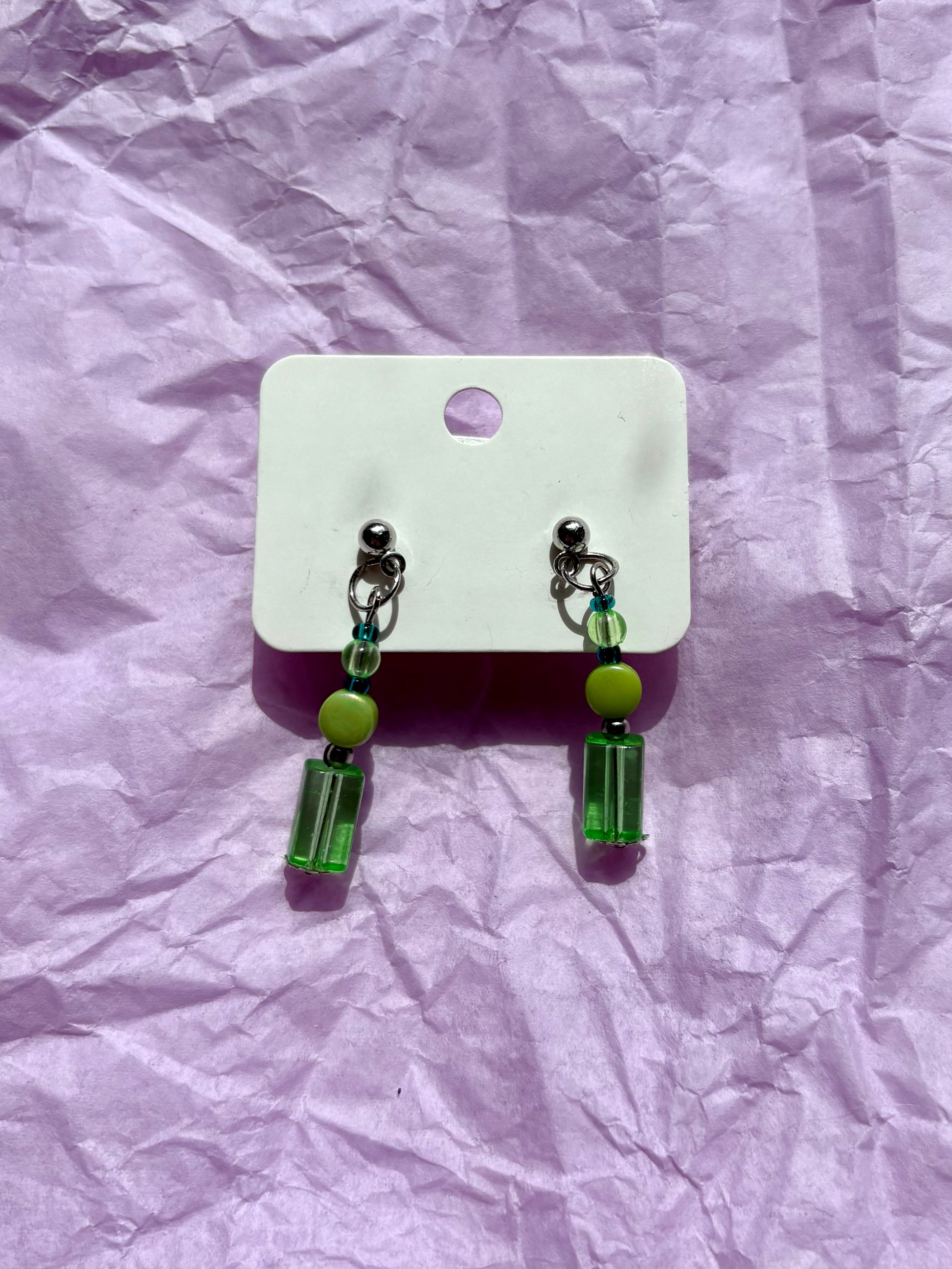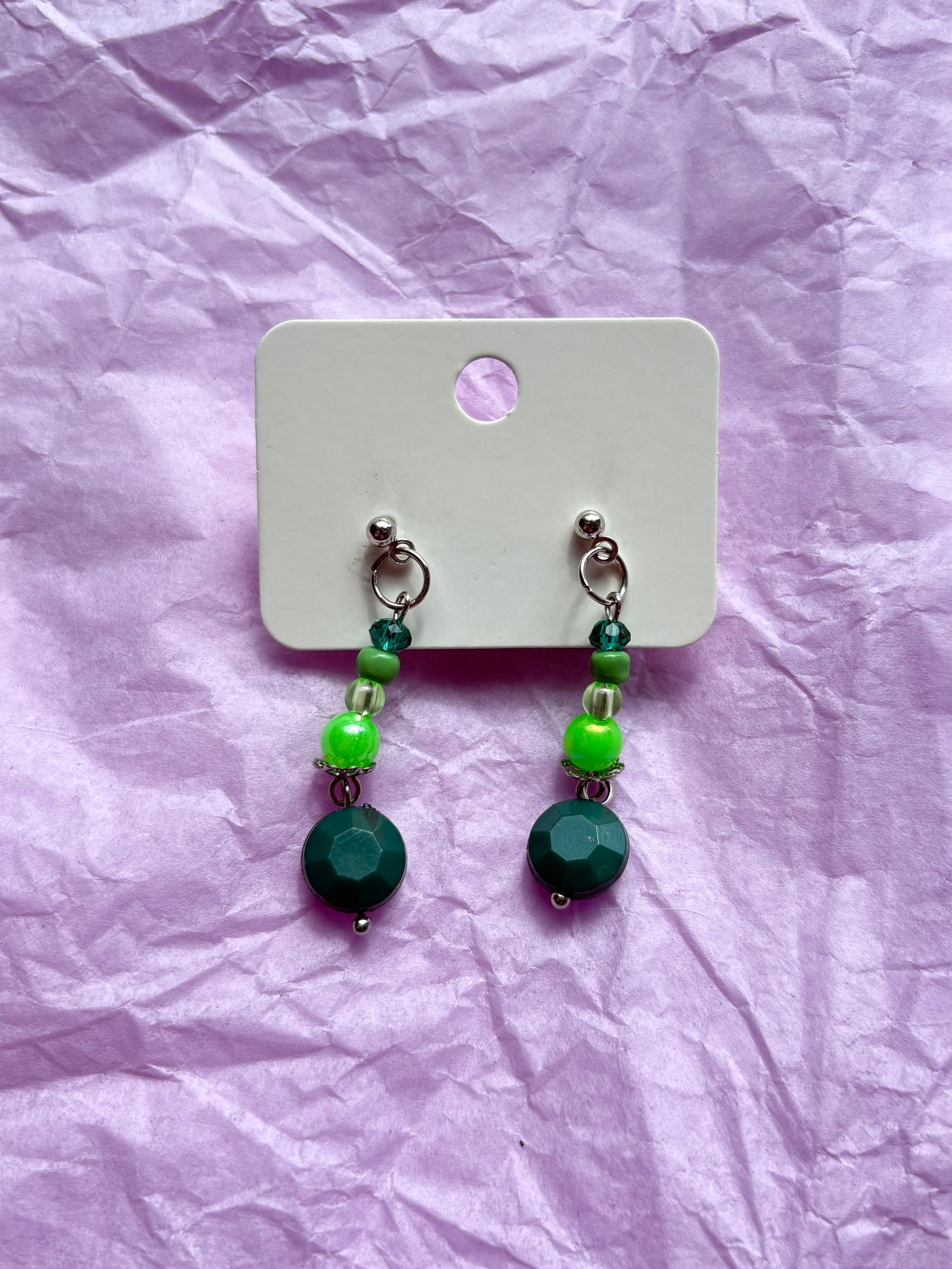 Stunning, beaded earrings handcrafted in Tāmaki Makaurau. Designed using beads and charms that are 100% secondhand, donated, or recycled pieces. Look cute while being a friend to the environment!
