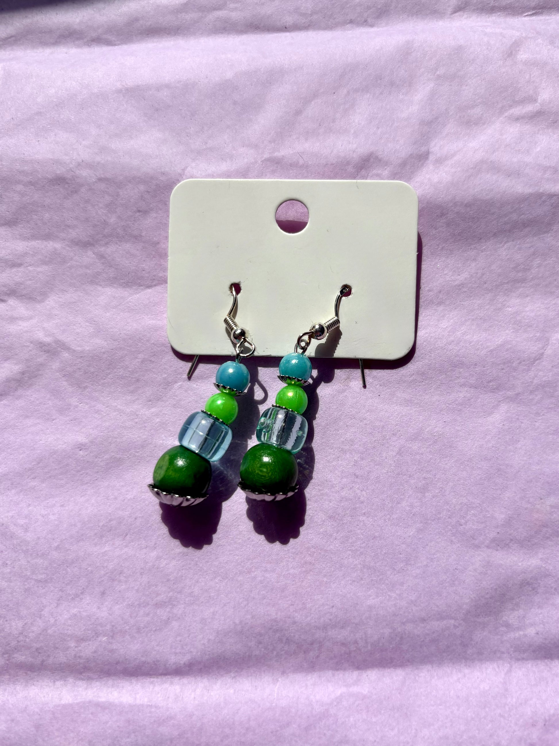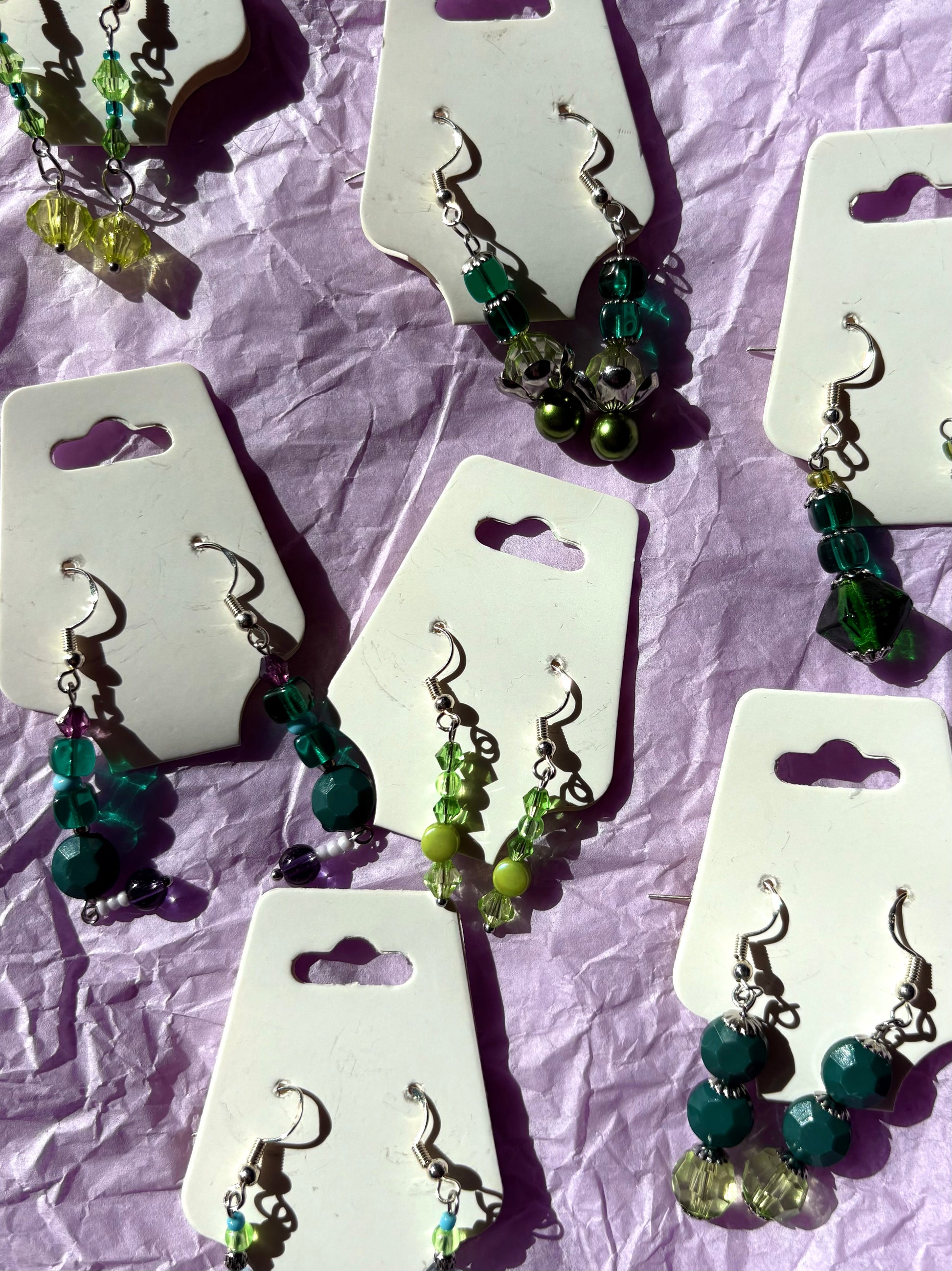 Stunning beaded earrings, handcrafted in Tāmaki Makaurau. Designed using beads and charms that are 100% secondhand, donated, or recycled. Look cute while being a friend to the environment!