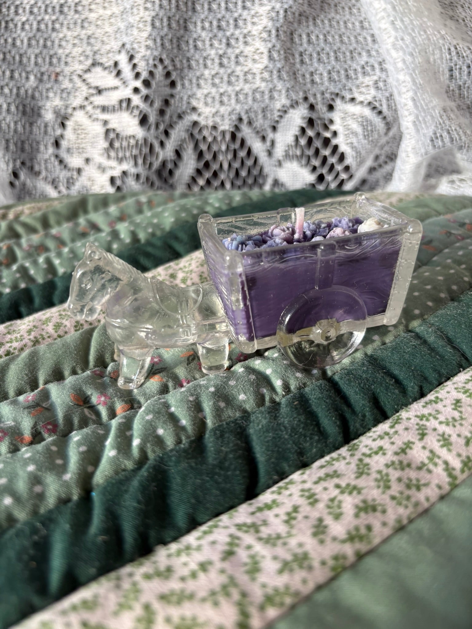 All candles are made using soy wax, and scented with fragrance oils. Each candle is decorated with small flowers on top, also handmade from soy wax.