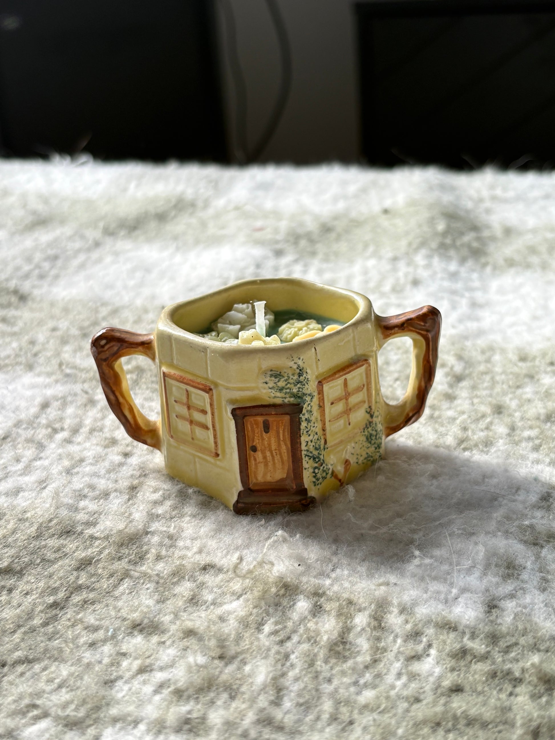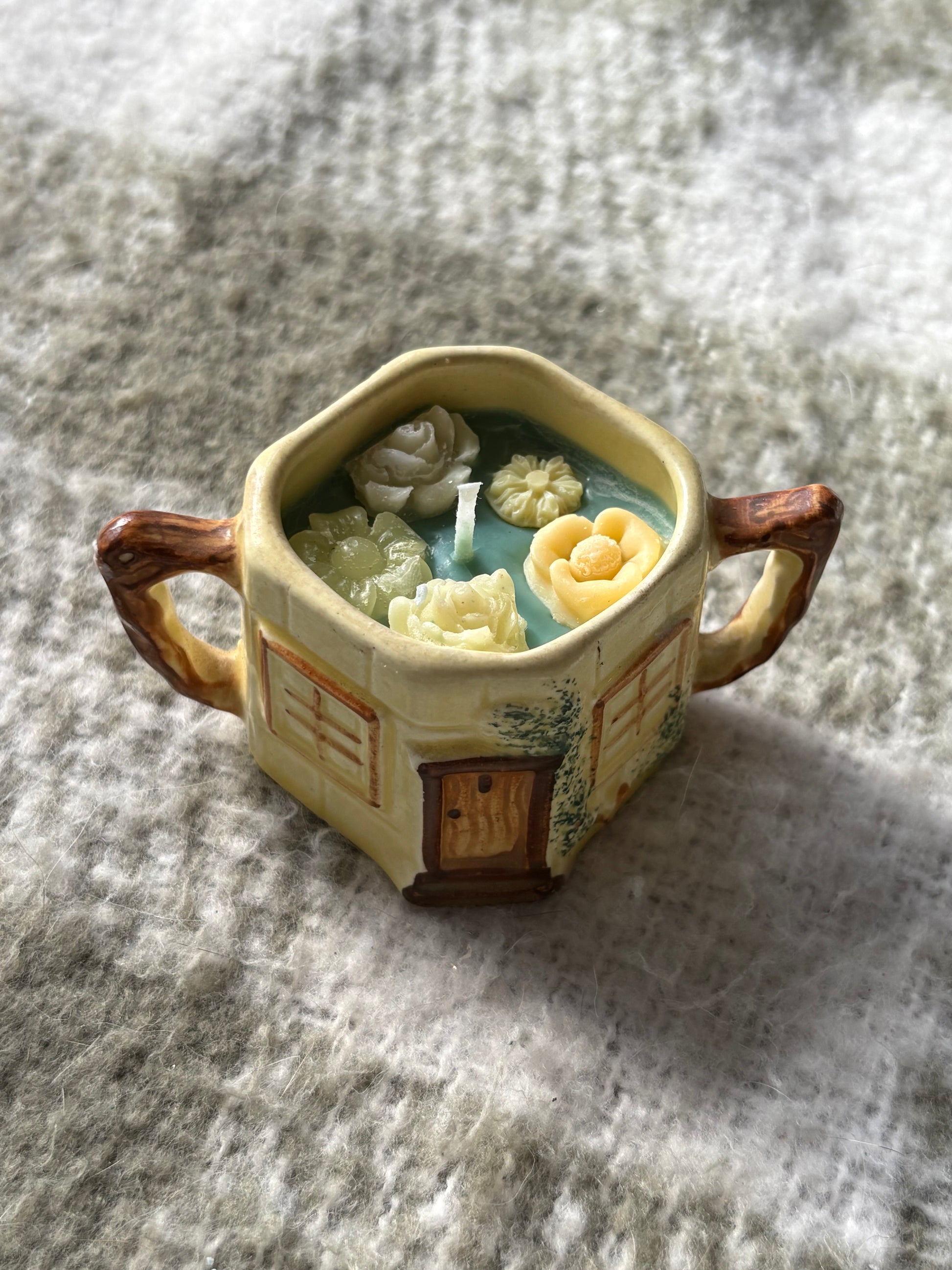 A handmade candle, upcycled from a pre-loved vessel. Instead of letting used-up candle holders, beautiful teacups, or gorgeous ceramic pots and more stay forgotten in an op shop or a landfill, REBLOOM gives past treasures a chance at new life.Ā