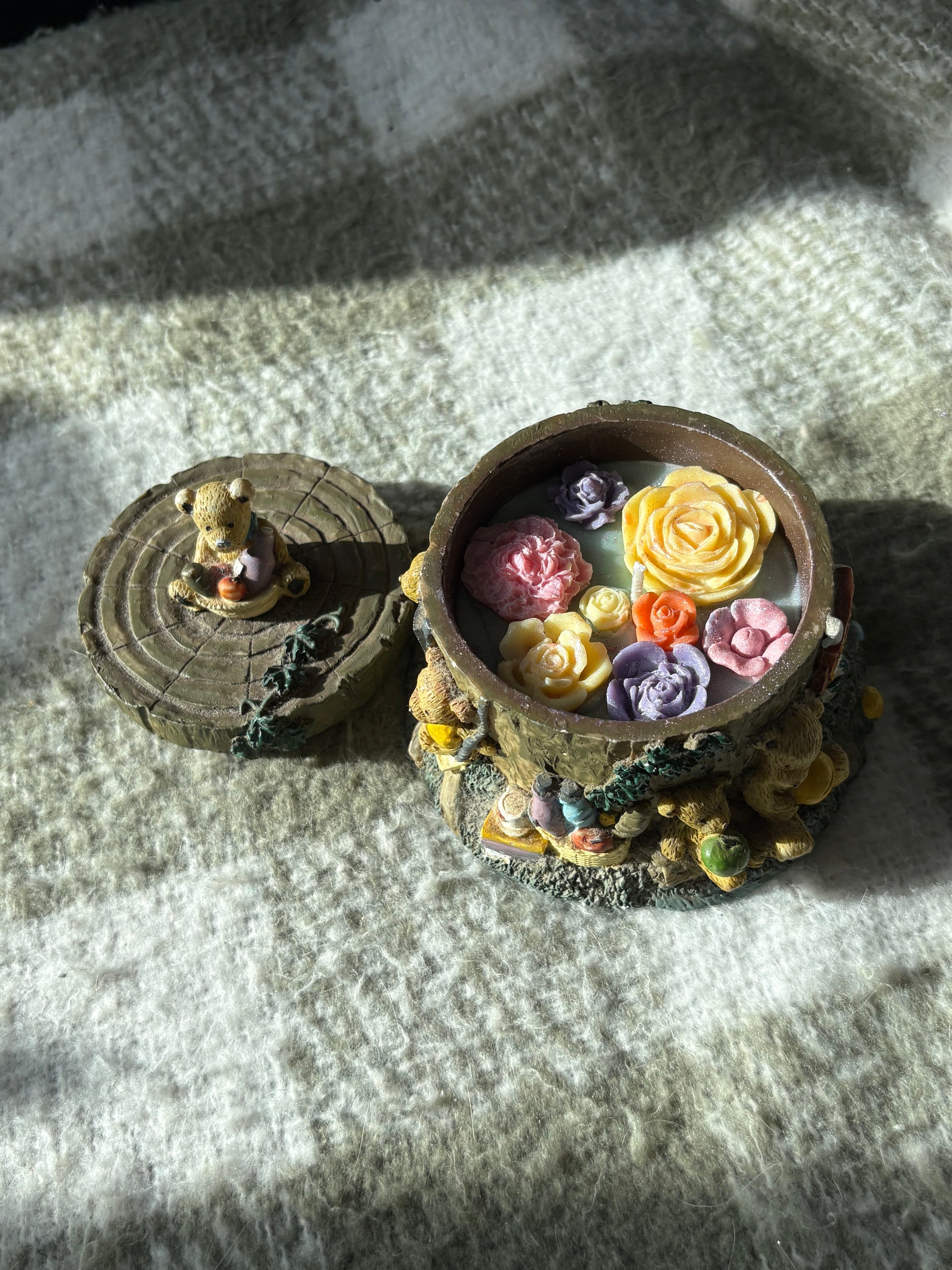 All candles are made using soy wax, and scented with fragrance oils. Each candle is decorated with small flowers on top, also handmade from soy wax.